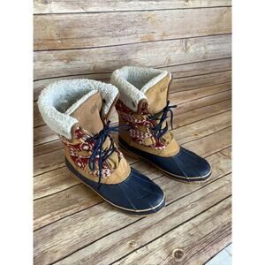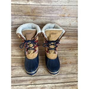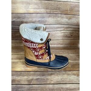 Khombu Womens Snow Boots Size 9 Winter Pull On Casual Faux Fur Lace Up Red