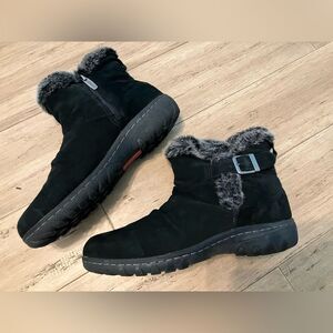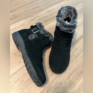 Khombu black suede fur cudff side zip women’s ankle boots. Size 9