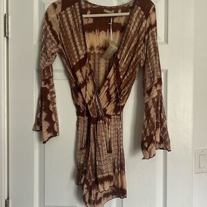 Khush Beaded Shorts Romper - Brand NEW - Long Bell Sleeves NWT Size Small