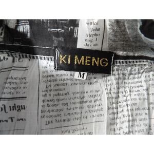 Ki Meng Top Cardigan Blouse Medium Newspaper Print Lagenlook Art to Wear