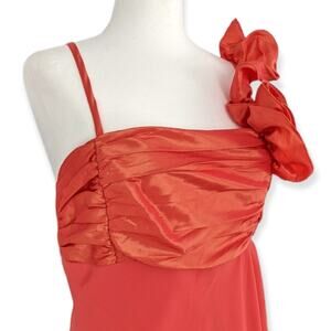 Late 1990s Y2K hot coral formal dress from KiKi, juniors size medium.