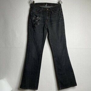 KiKit Jeans Size 8 blue/black color with brown stitching Floral Patching
