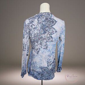 Kiara Aqua Embellished V-Neck Long Sleeve Top M โ Boho Blue Paisley