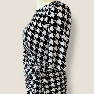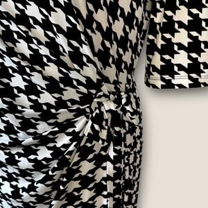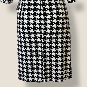 Kiara Houndstooth Half Sleeve Ruched Stretchy Sheath Dress Size L Black & White