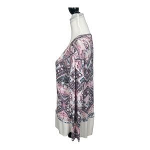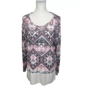 Kiara Multicolor Blouse Size L Chiffon Knit Overlay Aztec Print Long Sleeves Top