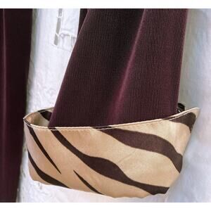 Kiara Travel Sexy Stretch Comfy Pull On Pant/Top Brown Satin Collar/Cuff LARGE