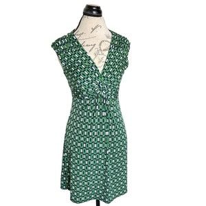 Kiara Womens Dress Size Small Short Sleeve Green Geometric Knot Mini Stretch