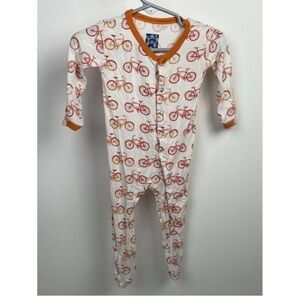 Super cute KicKee Pants Baby sleeper pajama Orange and Red Bike print.