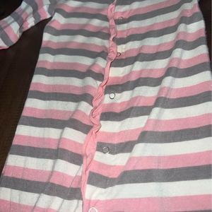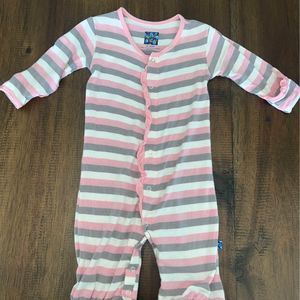 KicKee Pants Bamboo Sleeper / Romper - size 3-6 -Pink White Gray Stripes Ruffles