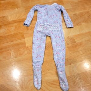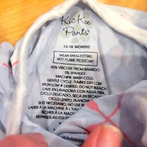KicKee pants is super popular for bamboo mega soft onesies and fabrics. Size 12-18 months footie long sleeve onesie. Ruffle butt. Zipper closure down the front. foldable mitten covers on the sleeve. Some pilling and fuzzies as shown. gently used.