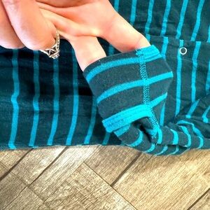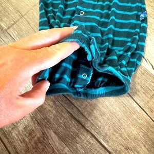 Kickee Pants 0-3 month Teal and Navy Striped Baby Gown with button snap