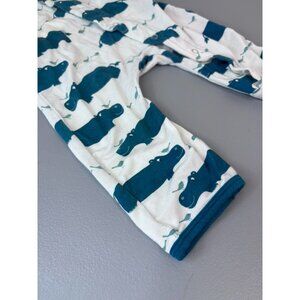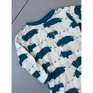 Kickee Pants brand baby size 3-6 month hippo printed pajama set. In great pre-owned condition. Footless sleeper is lightweight with a great stretch. Bamboo viscose material blend. Snaps on the bottom and the booty flap.