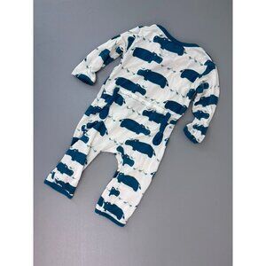 Kickee Pants 3-6 month baby one piece blue white hippo footless sleeper