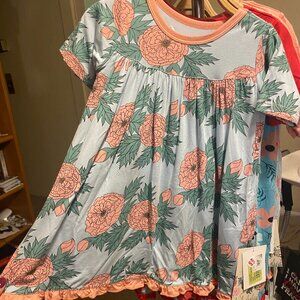 Kickee Pants Short Sleeve Swing Dress Romper Spring Sky Floral Girl
