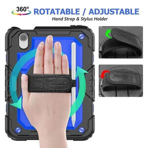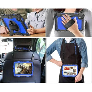 The TPU and silicone material provides a comfortable grip and a rotating, adjustable hand strap allows for 360° protection. With its sleek black and blue color scheme, this case is both stylish and functional. Whether you're using your iPad for work or play, this case is the perfect accessory to keep your device safe and secure.