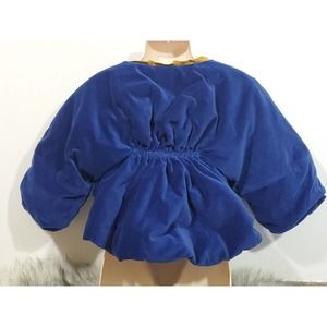 Kico for Anthropologie 5/6 Velvet Velour Quilted Blue Yellow Child's Snap Jacket