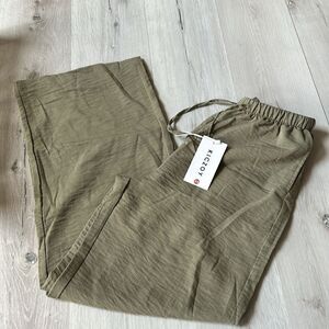 Kiczoy women’s high waist wide leg pants, draw string tie, size XS Green NWT