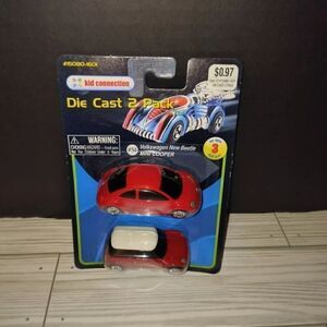 Kid Connection Die Cast 2 Pack #34 Volkswagen New Beetle & Mini Cooper 1/64. Packaging has some wear from age and storage. Sold as is.