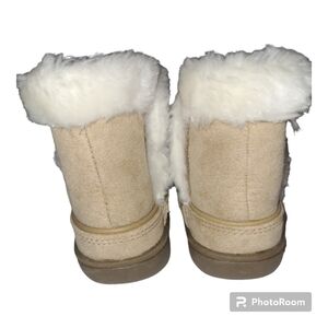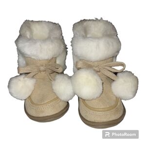 Kid Connection* Pom Pom Boot* Suede/Faux Fur Lining* Velcro Side* Sz 4