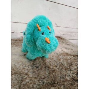 Kid Connection Teal Plush Walking Dinosaur Stuffed Animal Toy Orange Horns Tags