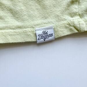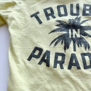 Kid Dangerous small shop out of LA, pale yellow tee with Trouble in Paradise graphic. Size 2, GUC for wash wear, see photos.
