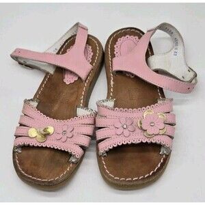 Kid Express Girls Pink Leather Sandals Flowers Baby Doll Lacy Size EU 30 (US 12)