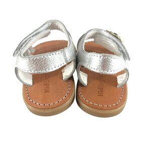 Kid Express Toddler Girls Sandals Leather Floral Applique Silver Size 20 US 4
