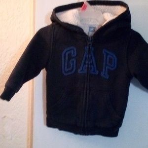 Gap zip up hooded kid jacket;blue; size 3 wool lining.