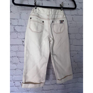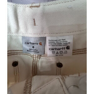 These Kid's Carhartt white jeans in size 6 are perfect for casual occasions. Made from denim fabric, they feature a zip closure for easy wear. The classic white color and brand Carhartt bring a timeless feel to these versatile pants. These machine washable jeans are just right for any little girl looking for comfortable and stylish clothing.