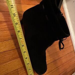 Kid suede Ferragamo black mid-heel booties pre-owned size 8 B Italian-made