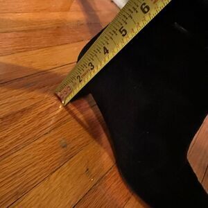 Buttery-soft, Kid suede Salvatore Ferragamo Boutique black mid-heel booties pre-owned size 8 Italian-made with leather trim and bow. Inside zip closure. Super-soft Leather lining and leather sole. A bit light general wear on bottom of sole. Clean. No stains, rips or tears, suede-covered heels. Very comfy and versatile! — Ferragamo, as always, features Traditional-contemporary luxury-craftsmanship designed and made in Italy since 1927.