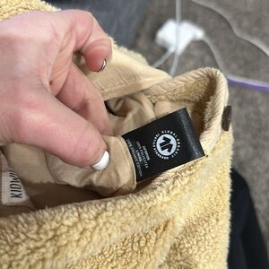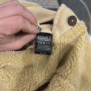 Kid wild toddler strap overlay hooded jumpsuit tan button up size 18-24 months