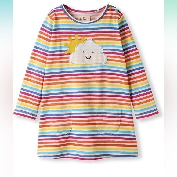 KidIO Sunshine Rainbow Appliqué Striped Dress baby girls 18-24 months NWT