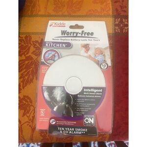 Keywords: Kidde, smoke detector, carbon monoxide detector, battery powered, photoelectric sensor, voice alerts, safety device, home safety, white, 10-year warranty, new in box.