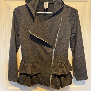 Kiddo by Katie Charcoal Grey Ruffled Zip Jacket Top sz 12