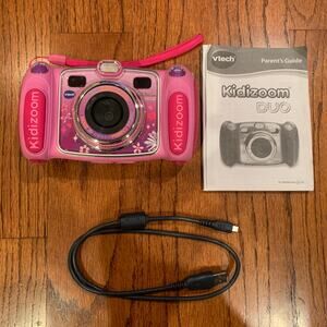 'KidiZoom Duo Camera is a fun, durable and easy to use digital camera with front and rear facing cameras so you can take fun photos and selfies. Special featured Photo Optimization, when you take a photo, multiple shots will be taken and the camera will find the best shot to save. The camera also features movie recording and voice recording with five different voice changing effects. There are also fun games with motion control and creativity options allowing you to enhance your photos with a variety of frames, stamps and wacky effects. In addition, KidiZoom® DUO features a Parental Controls setting, it allows parents to limit the play time for the 5 built-in games. You can also disable all games through this setting. Once games are disabled, the game submenu will be hidden in the Main Menu. 2.4" TFT color screen, front camera 1600 x 1200 pixels, and rear camera 640 x 480 pixels. There is 256 MB of memory (shared with program data) built into the camera, Intended for ages 3 to 9 years.'
