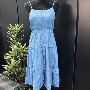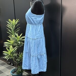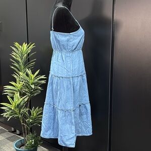 Kidpik Denim/Jean look, adjustable thin strap, elastic waist tiered ruffle maxi