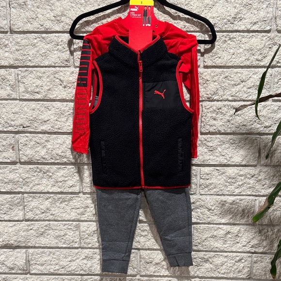 3 piece set includes long sleeve shirt, sweatpants and anti-pilling zip up vest with pockets.