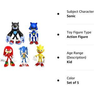 Kids 5 Inches Tall Sonic Action Figures Toys with Movable Joint (Pack of 5)