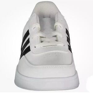 Elevate your child's tennis game with these Adidas Breaknet 2.0 K Tennis Shoes in white and black. These shoes are perfect for casual wear and are suitable for both boys and girls. The striped pattern adds a touch of style to the shoes, making them a great addition to any outfit. The shoes are designed for tennis performance and activity and are part of the Adidas Tennis product line. They are made in Indonesia and are available in US shoe size 1. These sneakers are perfect for your child's tennis adventures, and their comfortable fit and durable construction will ensure they last through many games.