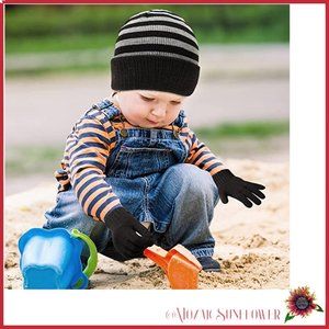 Kids Ages 6-10 Black and Heather Grey Stripe Knit Beanie