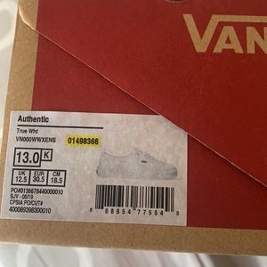 Authenic Vans in True White. Kids size 13. Perfect for school. Some signs of wear but overall great condition. Laces in tact.