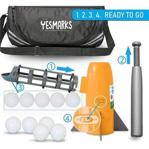 🧿 PRACTICE ANYWHERE - The hollow plastic bat, easy to assemble and disassemble launcher, and sports bag lets you conveniently bring our baseball equipment kit anywhere for off-the-field training!