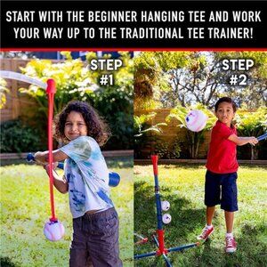 HANGING TEE: For your youngest players, the hanging tee design suspends a ball anywhere from 18" to 26" from the ground using self stick technology so that young hitters can practice their hand eye coordination!