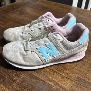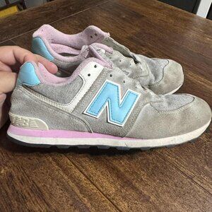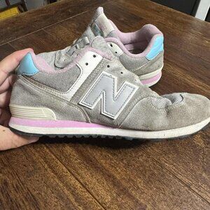 Kids Big New Balance 574 - size 5.5 (women’s 7) Pink Blue Very Worn Vintage Look