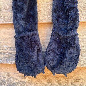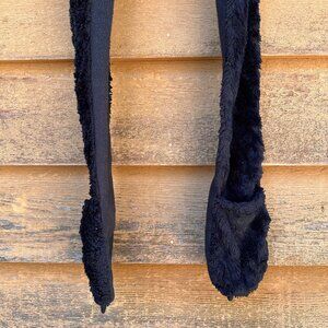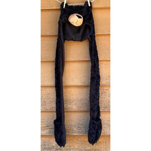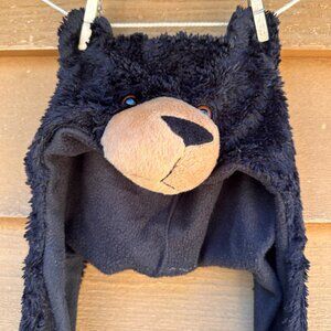 Kids Black Bear Hat With Attached Mittens Plush Fleece Animal Design Warm Winter