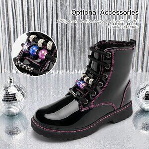 Kids Black Pat Boots Toddler Girl Boots DIY Combat Ankle Boots Side Zipper