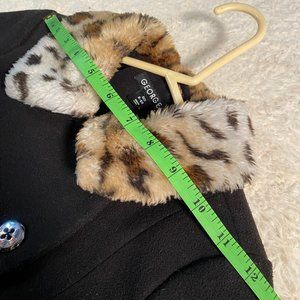Kids Black Pea coat Jacket with animal print faux fur Collar. Size 6-6x, gently used condition. No damages or stains.