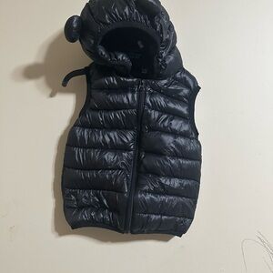 Pufffer vest with bear hooded perfect for fall and spring layering , worn once only, fits 2t -3t
