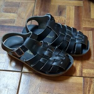 Comfortable black fisherman sandals for kids. Waterproof Sun-San style. Toddler size 10.